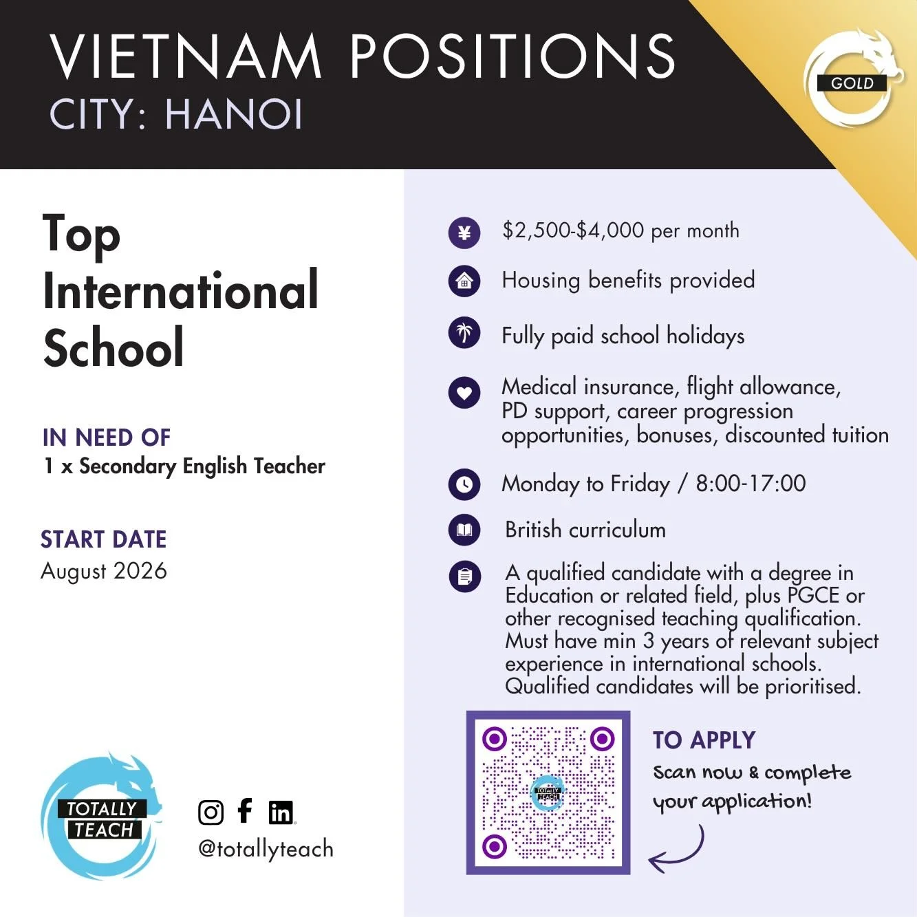 We partner with the best schools across the globe to make sure you land your perfect position.